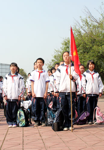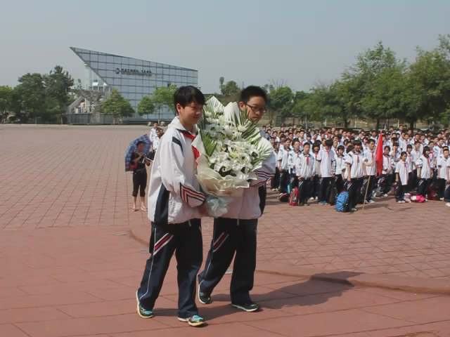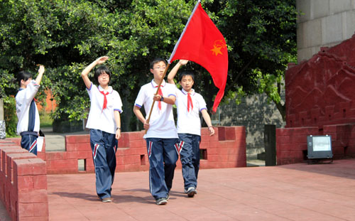 4月26日上午,外国语校区初2013级学生、班主任,初中党支部党员教师共同前往成都市大邑县建川博物馆,开展名为“我们爱祖国 永远跟党走”的主题队会。在博物馆的广场上,同学们排着整齐的队伍高唱《中国少年先锋队队歌》,并向革命英雄敬献了花束。德育处陈铁军主任在题为《让心向着党,时刻准备着》的演讲中说到:“不懂历史的人没有根,淡忘历史的民族没有魂,希望大家以尊重和敬畏的态度,感受历史上发生的那一幕幕真实的场景,领会和珍惜我们今天来之不易的幸福。”学生代表陈永尧也在发言中表示:“我们是时代的幸运儿,我们应该懂得幸福生活来之不易,更应该懂得所肩负的历史责任和使命。”本次主题队会在全体少先队员庄严的宣誓后结束。