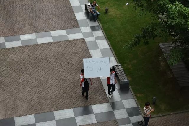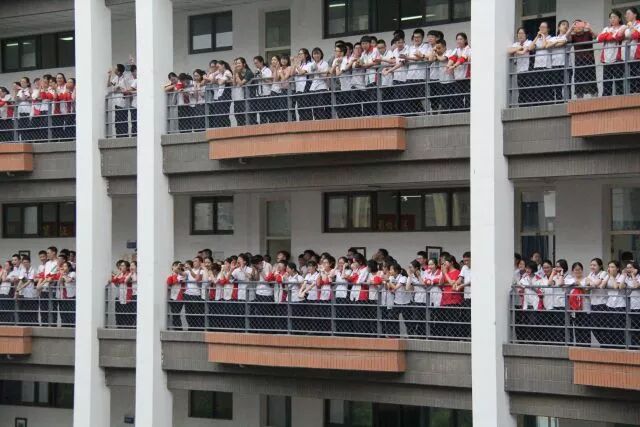 一年、两年前,我还是对着C栋大喊加油的一代,如今却已变为能带着自信接受来自学弟学妹祝福的成熟的一代。听着响彻云霄的加油声,再一次深切体会到作为一名树德学子的骄傲。那喊楼之景,加油之声,能使人心安,给人力量。