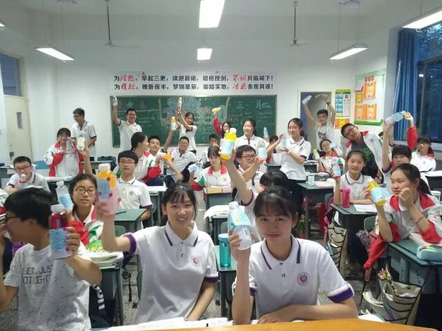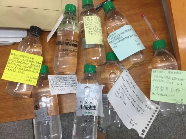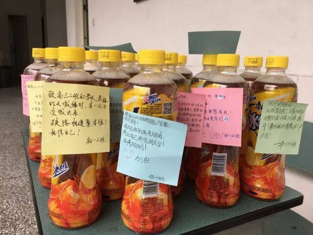 看着学弟学妹们手中的标语和墙上的便利贴,喝着初一同学送的苏打水,听着此起彼伏的口号,我感受到作为一名树德学子的幸运和幸福。树德加油!高考必胜!