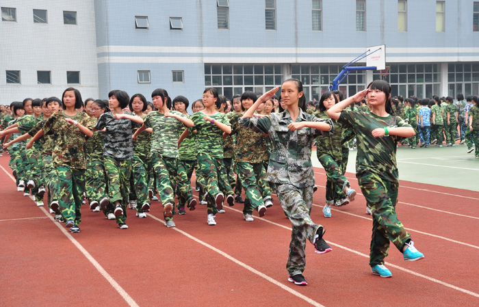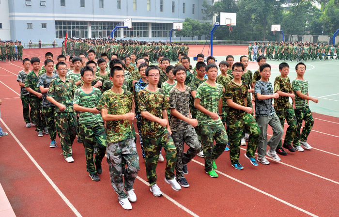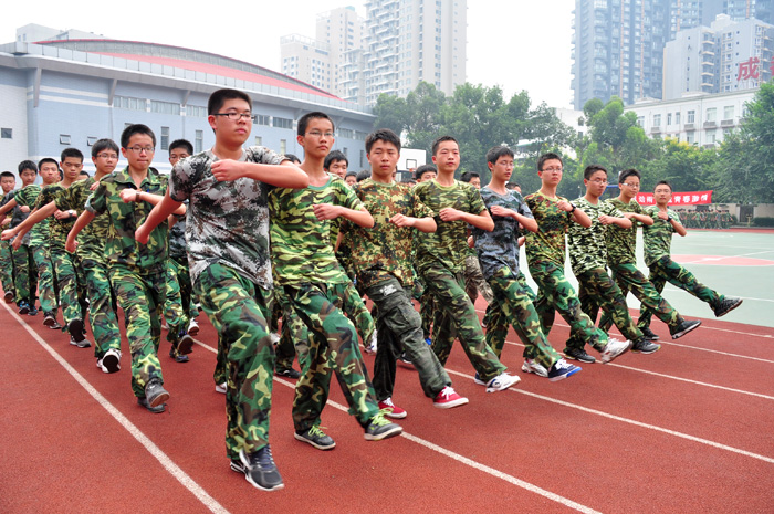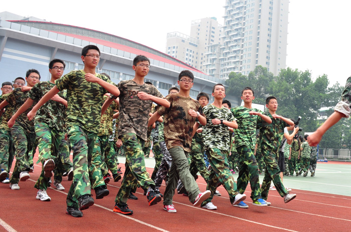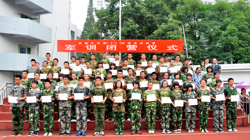 8月30日下午14:30,树德中学(宁夏校区)高2011级新生军训闭营仪式在学校体育场举行。