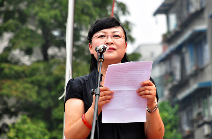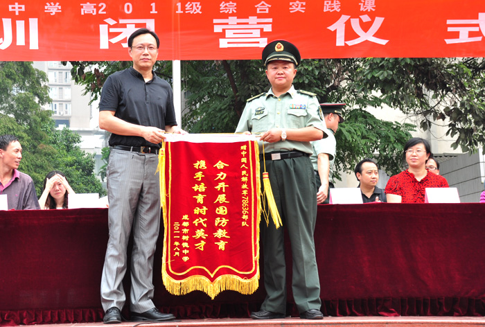 林毅副校长代表树德中学向部队赠送锦旗