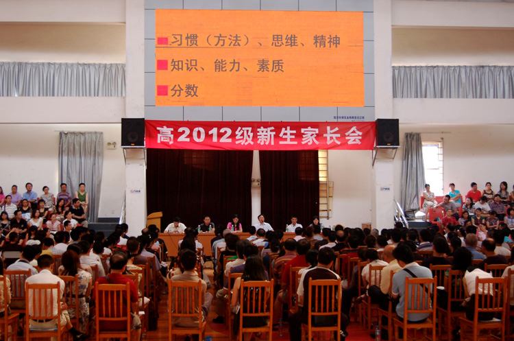 30日上午,高2012级新生家长会在体育馆召开,年级分管干部张翼主任主持会议,左校长就树德办学思想和办学特色向家长们作了介绍,希望与家长们共同努力帮助孩子树立远大志向并培养他们的自信心,陈东永副校长向家长们提出以德为本促进学生的可持续发展,并就高中学习生活作了相关建议。