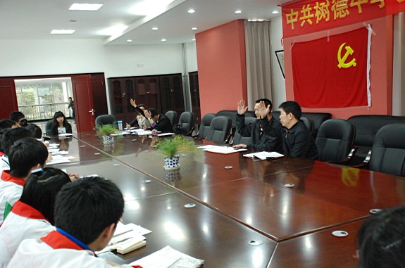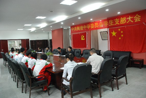 支部大会逐一对9名品学兼优的“入党积极分子”的申请进行讨论:在他们向支部汇报了对党的认识、入党动机、个人和家庭情况以后,入党介绍人对他们作出了客观公正的评价,并表示同意他们加入中国共产党;校团委、学生支部通报了一年来对他们的考察意见;学生支部全体党员举手表决,全票通过。
