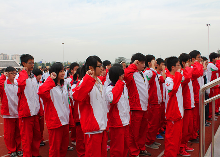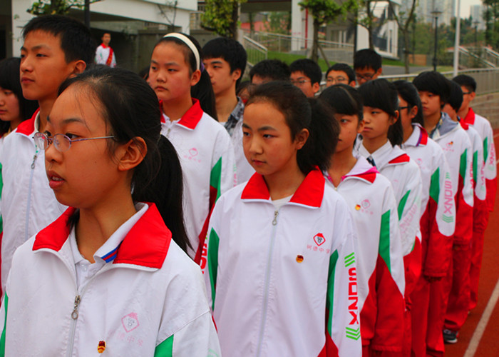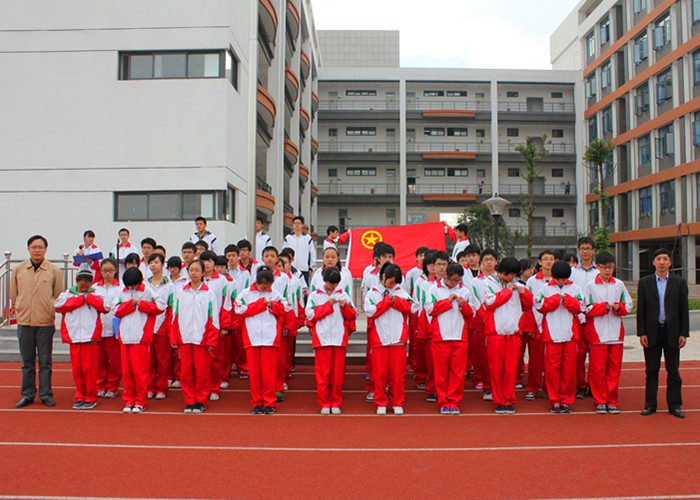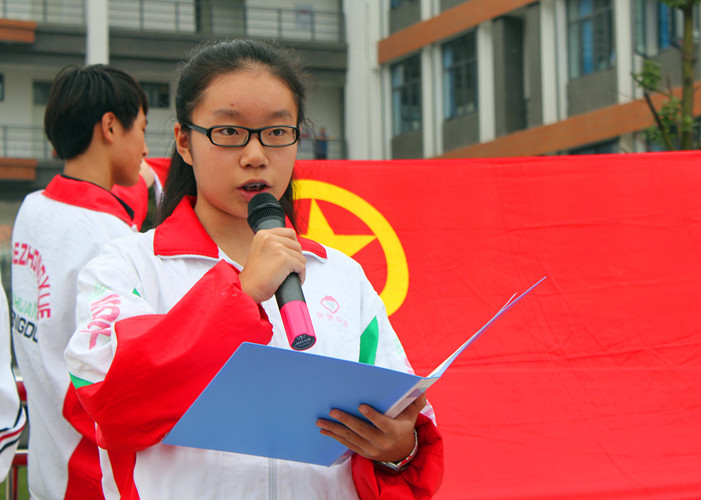 10月17日上午,树德中学(外国语校区)在晨会时间举行了简短而庄重的入团仪式。五十名新团员统一身着红色校服,在前胸别上了唐校长和林校长亲手授予的团徽,并在团委副书记何霁宇的带领下面对团旗庄重宣誓。在这批团员中,有十五名带队入团的初二年级同学,他们积极向上的思想、良好的生活作风、认真严谨的学习态度和工作态度获得了老师与同学们的认可,成为了全校学生学习和生活的榜样。初二(4)班的张羽嫣同学作为这批优秀新团员的代表进行了演讲,并在最后庄严承诺:“我们一定会尽最大的努力,在共青团中学习、成长,积极完成团交给我们的任务,做一名优秀的共青团员,为建设祖国作好充分的准备,为完善自我而永不停歇地前进!”