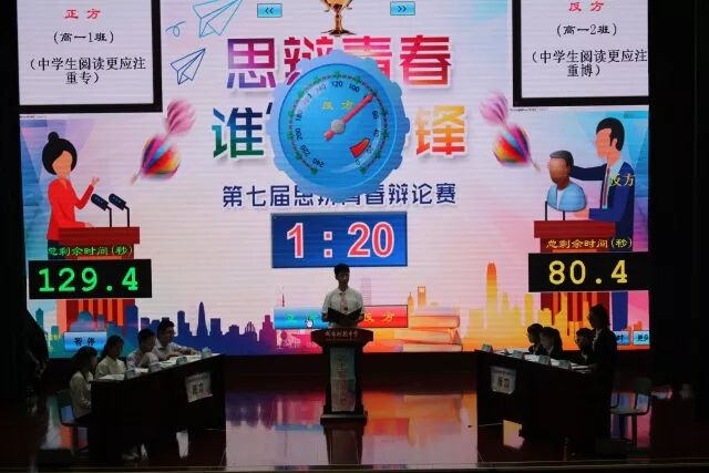 经过共6场激烈角逐,高2017级四班和六班获得了本次辩论赛的二等奖,一班和二班成功晋级总决赛,进行巅峰对决!这次,他们将对 “中学生阅读更注重专还是博”展开系统论辩。