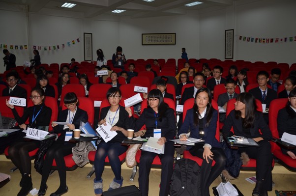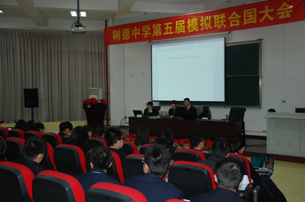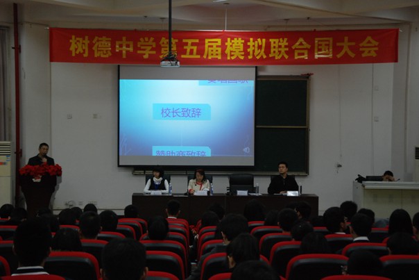 整体会议为时一天,在上午的开幕式上,由毛道生副校长为全体代表致开幕词,并由德育处副主任白德惠老师宣布大会开幕,接下来大会有条不紊地正式开始了,历经了三校区长达三个月的学术及会务准备,本次大会的进展十分顺利,得益于辛勤工作的志愿者们和工作人员,各校代表也对本次树德模联的会务的精致准备表示十分感谢.