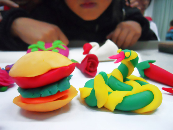 一团团彩泥,在孩子们手上幻化为一件件绚丽多姿的作品,
