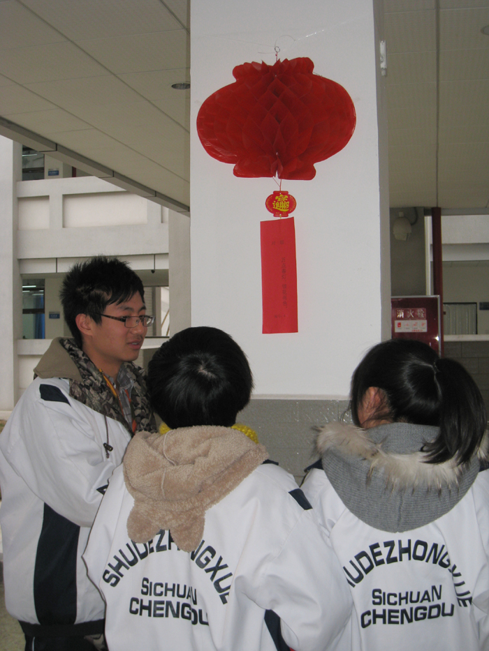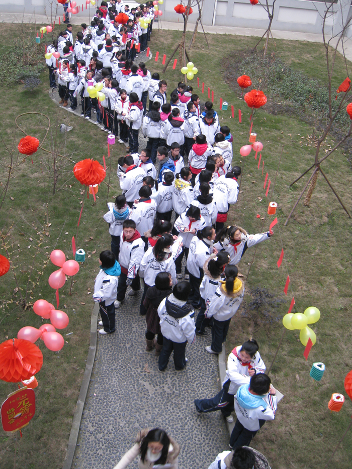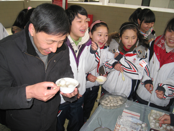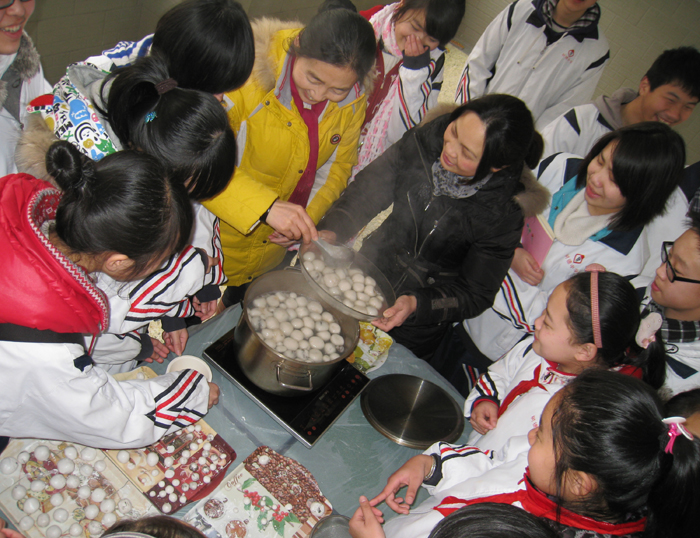 猜灯谜、对春联,包汤圆,在传统的元宵佳节,春意融融的树德中学校园里,师生们挂起了喜庆的红灯笼和红绸带,共同举办了各种游园活动。“希望借由这个活动引导同学们热爱我国的传统文化,重视传统节日”,德育处的陈主任说。课间时分,同学们纷纷到游园地点猜灯谜、对对联,积极思考,踊跃兑奖。而中午的煮汤圆活动更是把欢乐的气氛推向了高潮。在生活老师的指导下,学生们和面、烧水、包汤圆、煮汤圆,一步一步认真学习,有模有样。孙哲然同学激动地说:“参加这样的活动真是高兴,我们在家都很少包汤圆,过年都是包饺子,希望我能把汤圆包圆!”李坤洪说:“真想不到学校会让我们包汤圆,可以和同学一起包汤圆、吃汤圆,这绝对是我高中最难忘的记忆!”而在包汤圆的过程中,现场有说有笑,其乐融融。“王老,你看我包的飞碟!”张欣雨骄傲地说道;“你看我包出来是菱形!”“哎呀,好好搓,力气不要太大,掉渣啦!”大家一阵哄笑。最后,一盘一盘的汤圆包好,整齐排列,老师们还打趣地点评到:这真是初中生包的个头小,高中生包的个头大!”汤圆下锅后,大家围成一团,仔细关注着动静,当汤圆浮起来的时候,同学们齐声欢呼,鼓掌,激动的心情难以言表。热气腾腾的汤圆端上桌,大家品尝到自己的劳动成果,心里都是美滋滋的。同学们还炫耀道:“我们包的汤圆真巴适!”让人感到欣慰的是,同学们还专门送了自己煮汤圆给班主任、任课老师,以表对老师的感谢之情。
