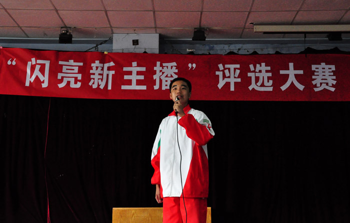 (记者:易殊岑摄影:白兰皓)10月21日中午,树德中学第二届“闪亮新主播评选大赛”在多功能厅拉开帷幕,当四个主持人激情宣布比赛开始后,参赛的同学便逐一隆重登台,第一位同学演唱了一首周杰伦的“退后”,打动了全场,其后的同学也不甘示弱,上场就来了一段流利的英语,而后又唱了一首优美的“眷恋”,最后还现场采访了一位同学对于校园攀比的看法。后面上台的同学有的以风趣幽默的方式播报足球新闻,有的用温馨的歌曲温暖全场,有的作了一段激动人心的演讲,有的通过采访引发人们思考。比赛中,同学们尽情展示自己的才华,用动听的桑音感染在场的每一个人,得到观众们的好评。