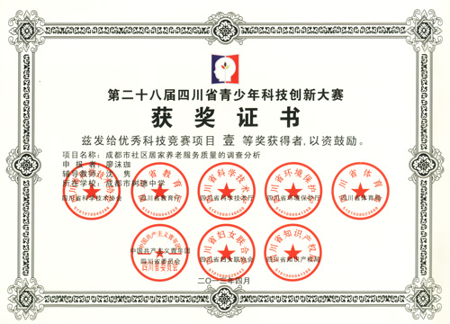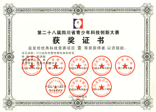 热烈祝贺我校学生在第28届四川省青少年科技创新大赛中获得佳绩,指导老师沈隽获四川省优秀辅导奖。特此报喜。