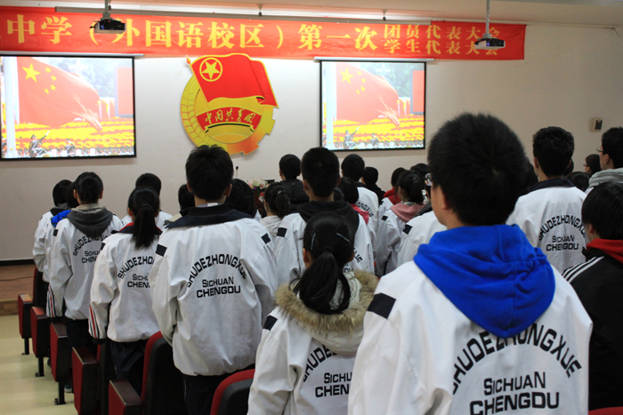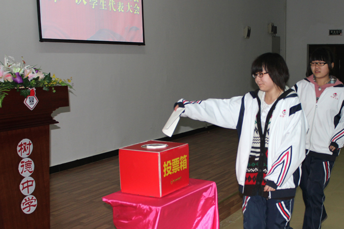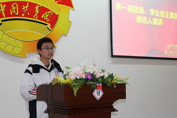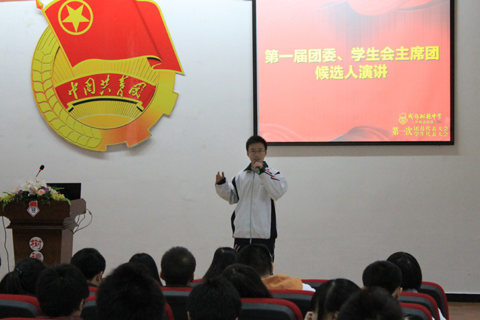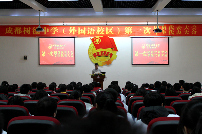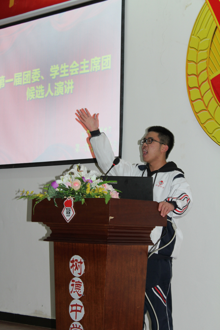 朱助理代表学校党委致辞,他说道:这次大会,是我们青年政治生活中的一件大事,对于进一步动员和团结广大团员青年,积极开展团的工作、学生工作具有十分重要的意义,他希望在座的青年学生能坚定信念、志存高远,刻苦学习、增长才干,开拓进取、勇于创新。随后,举行了树德中学第一届团委学生会主席团干部竞选演讲,14名候选人分别竞选团委副书记、学生会主席、学生会副主席等职务。候选人林正霄讲到:我不敢说我的工作能力非常强,但我相信,只要努力就有希望。作为升旗仪式呼号人的王治勋现场呼声很高,而他认为树德中学外国语校区学生会作为一个崭新的学生组织,学生干部就应该有打造最好的学生会的勇气和信心。傅成宇同学走上台便讲到:男生赢在气势,而女生赢在气质。她智慧地以她的大气、稳重、从容赢得了在场观众的认可。在精彩的竞选演讲之后,团员代表、学生代表均投上了宝贵的一票。随后,学生代表徐晨阳宣读“学会感恩,与爱同行”倡议书草案,获得全体代表一致通过。最后,大会在充满活力的团歌声中圆满结束。