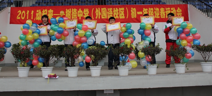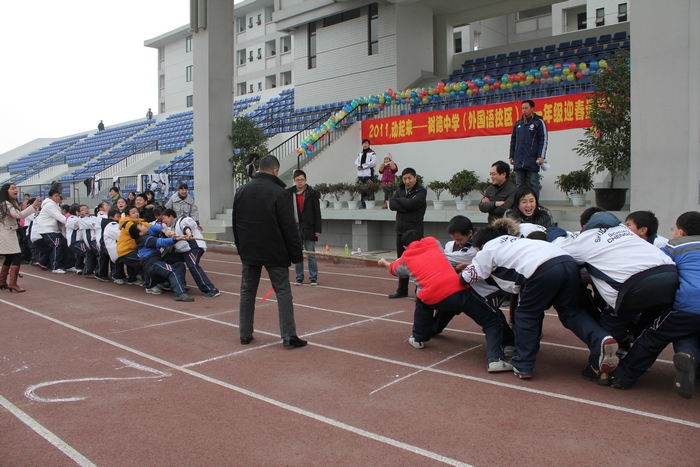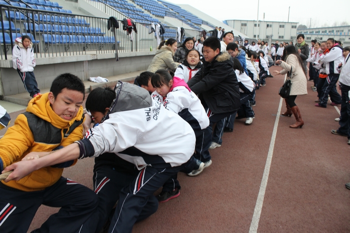 为增强学生体质,丰富校园生活,外国语校区于1月21日举行初中年级“迎春运动会”。运动会包括“拔河比赛”与“夹球蛙跳迎面接力赛”。同学们积极参与,在活动中团结一心、永争第一,现场加油声此起彼伏,气氛十分活跃,大家们沉浸在运动的喜悦之中,一扫冬日的严寒。最后,初一六班在拔河比赛中获得一等奖,初一(1)班在接力赛中获得一等奖。学校为各项比赛获得前三面的班级进行了颁奖。
