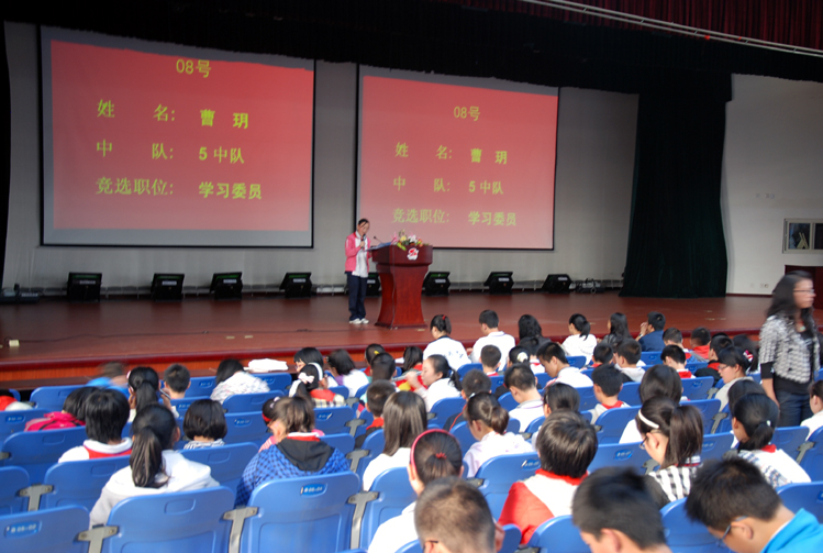 为了选拔出优秀的少先队员担任大队部的干部,也为了从小培养少先队员的服务意识、竞争意识和积极进取精神,1011日下午17点05分,我校在学术报告厅二楼隆重举行了少先队大队委竞选演讲,从中选出大队长,组织委员、文娱委员、劳动委员、体育委员、宣传委员各1名。竞选的同学朝气蓬勃,自信大方,他们的演讲妙语连珠,精彩纷呈,充分展示了树德学子的风采。演讲结束后,全体少先队员庄严地投下神圣的一票。