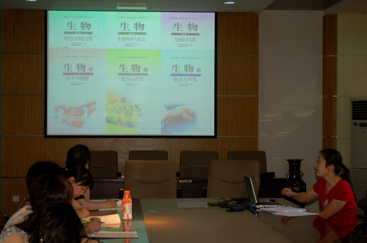 近日,树德中学新课程沙龙——高中生物新课程解读在艺术楼会议室举行,生物组陈文红老师作了主旨发言,她就课程性质,课程的基本理念,课程设计思路,高中生物课程标准的主要特点,高中生物新教材解读,课堂教学的难点,适应高中生物新课标的策略探讨等六个方面进行了阐述,同时就高考与课改的协调,学分认定与应试考试的关系,选课与排课的方式等提出了自己的疑惑并同大家探讨了实施新课程标准的过程中可能会遇到的问题。