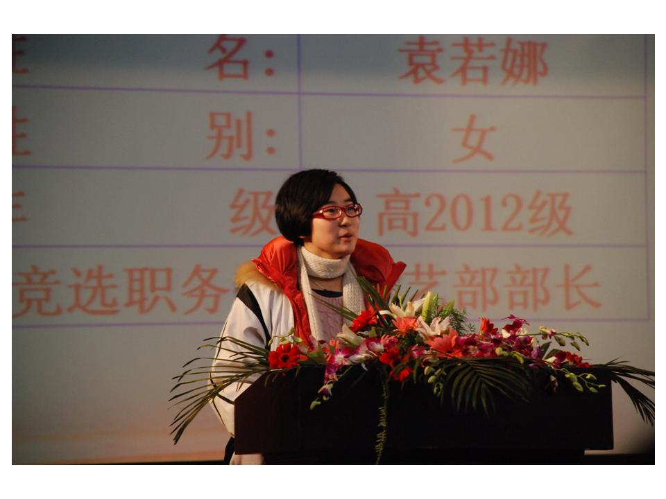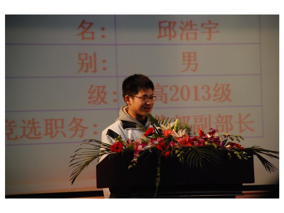 在审议、表决《选举办法》、《监票员、计票员提名名单》后,学生会、团委委员候选人分别作了精彩的竞选演讲。