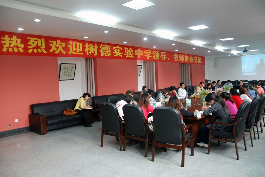 20日下午,树德实验中学校长、教科室主任等行政班子带领该校青年教师一行十五人到我校交流学习,受到我校的热情接待。