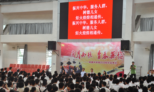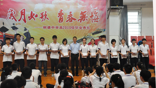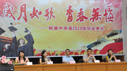 6月13日上午8:30,树德中学(宁夏校区)高2010级毕业典礼在体育馆隆重举行。
