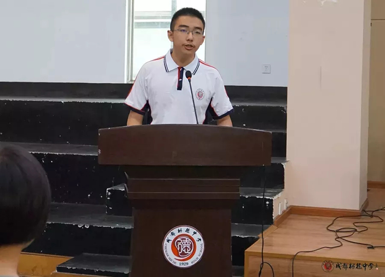 2017年全国“最美中学生”、中国共产主义共青团第十八次全国代表大会代表、四川省优秀共青团员、“四川新青年”候选人、高2018级新生代表向靖奕同学说:“经历了三年的初中生活,从懵懂逐渐走向成熟,一点点的坚强勇敢,他们都期待着三年的高中生活,从今日起,承载着荣光与责任,以树德人的身份,走向未知但必然精彩的明天。”