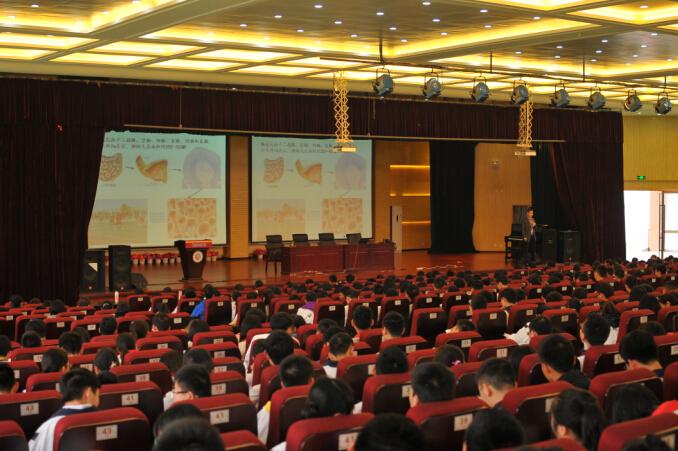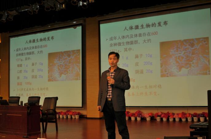 赵献军教授主讲题目是“微生物与人类健康”,他以贴近学生实际的语言,深入浅出地引导学生认识微生物对人体的重要性及微生物与人体的关系。对生物学感兴趣的同学会后继续向赵教授请教。