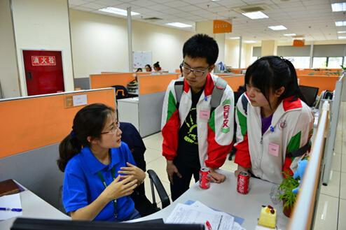 一场简短的欢迎仪式后,同学们分为若干个小队,戴上护目镜,跟随志愿者进入生产车间参观。正在工作的员工看到同学们的到来,微笑致意后,便继续投入到辛勤的工作中。据志愿者讲解,同学们了解到铁姆肯公司的每一件产品都需要经过严格的检验程序,并深深震撼于他们一丝不苟的工作态度。接下来同学们又根据兴趣自愿分组,由企业志愿者一对一带队,深入了解各职能部门的日常事务,在与志愿者的交流中,他们对未来的职业规划也更加明晰。