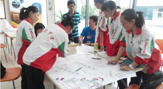 随后是同学们与企业志愿者的讨论、互动环节。同学们五人一组,以“我眼中的铁姆肯”为主题,畅所欲言,用自己独特的方式描述自己的感受。在小组展示环节,同学们表现突出,充分展示了树德学子的风采,受到公司员工及JA志愿者的一致好评。如有的同学通过图形结合的方式概括了公司的企业文化;有的同学以一口流利的英文脱口秀的形式展示了“我心中的铁姆肯”,有的同学铁姆肯公司是一个温暖的大家庭,其生产过程中的严谨精神令人折服,并由此联系到自己的学习生活也应脚踏实地……活动最后,铁姆肯公司总经理张健先生和学校带队老师贾小娟老师分别对本次活动做了总结。