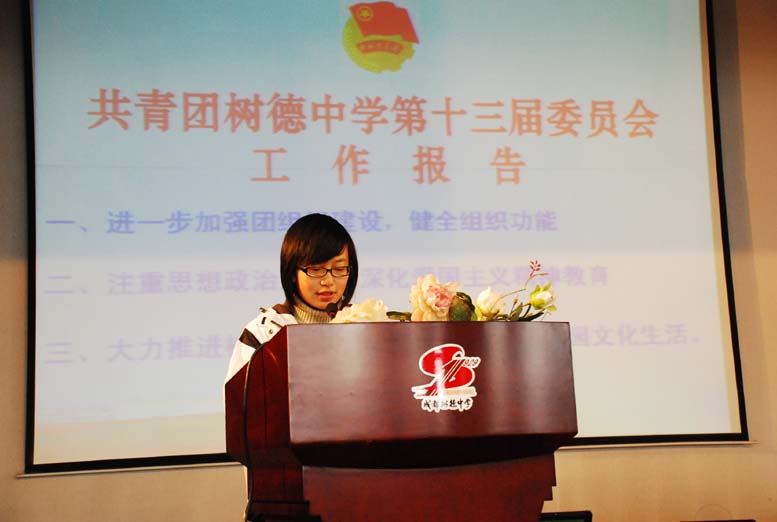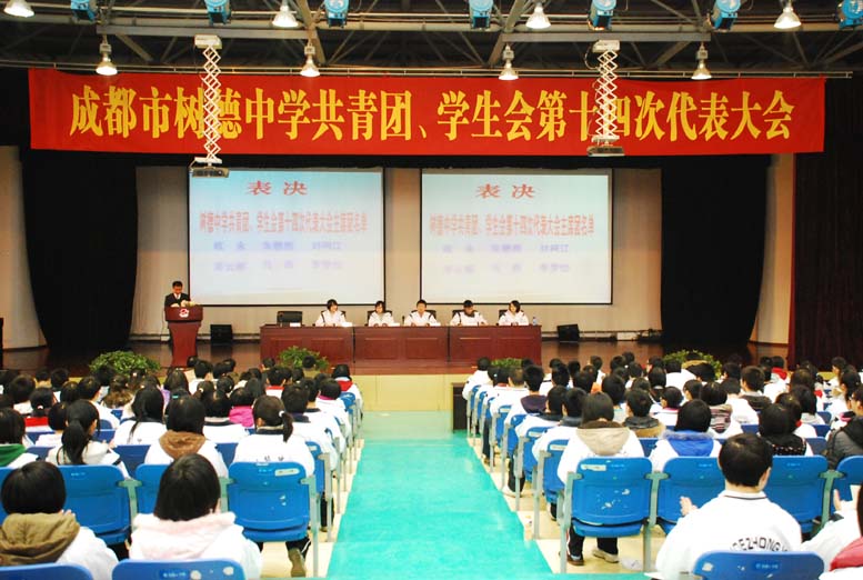 2010 128 下午4:30,树德中学共青团、学生会第十四次代表大会在学术厅二楼举行,大会由团委书记欧永老师主持。来自全校的334名代表满怀欣喜地参加了大会,学校领导毛道生副校长、宋光明副校长、朱志刚助理、德育处吴金全主任、程学琴副主任莅临指导。