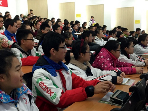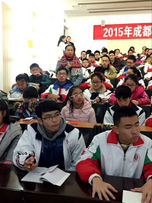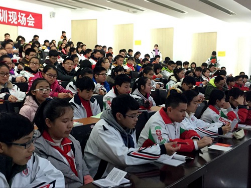 2016年1月6日,树德中学外国语校区第七期团校开展了第三次学习。申请入团的同学们在黄鑫老师生动的讲解中认真学习着。黄鑫老师提出“如果你想建立一个社团,你应该怎么做?”这引发了同学们的思考,带领同学们进入了这一次严肃又不失活泼的团校课程。同学们专注笔记、踊跃提问、积极思考。相信在黄鑫老师的认真教学下,同学们对团校学习及共青团会更新更深刻的认识。
