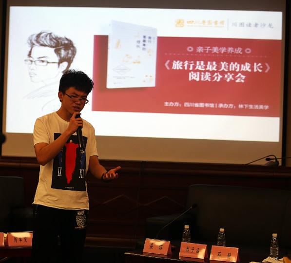 分享从《旅行是最美的成长》一书开始,这是一本关于树德中学(光华校区)高2014级14班在读学生刘予涵5岁到15岁的旅行与成长经历的绘本。10年间旅行中的所见所闻和成长故事,都记录在这本书中。刘予涵还是联合国环境规划署儿童环保大赛一等奖得主,并曾受邀请担任过该奖项的评委。2016年8月7日,他带着这本书与自己的故事,来到四川省图书馆“川图读者沙龙”,也将自己的书赠予四川省图书馆,让更多的读者分享他的经历。