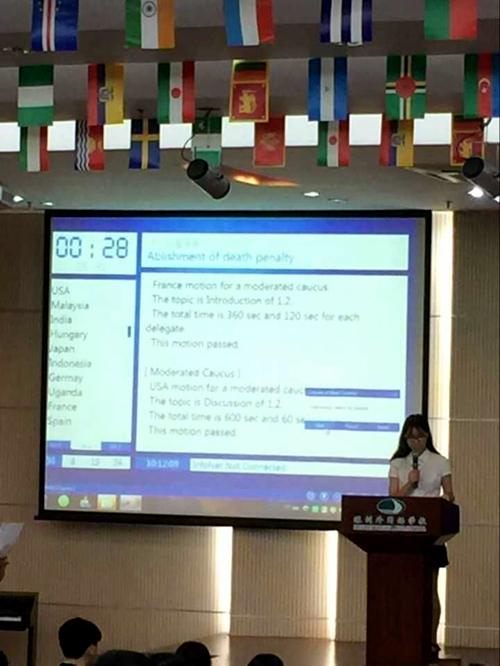 在人权委员会上,各位代表对是否应该废除死刑展开了激烈的讨论,印度代表(王依琪)作为核心国家,冷静辩论,合理把握立场,为着国家的利益、人民的幸福,以外交官的气质、外交官的渊博,给各位代表和主席留下了深刻的印象。