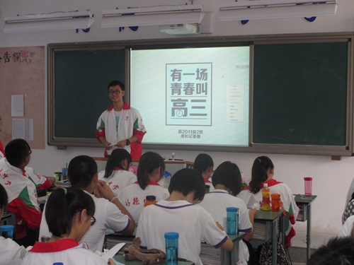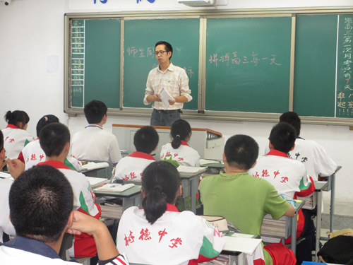 2013 年9月9日 下午,树德中学(外国语校区)各班开展了“与你同在,逐梦同行”主题班会课。各班级所有老师走进教室,与同学们一起憧憬新学期!物理组老师用不一样的物理公式给大家解释了班级团结和学习方法的重要性,英语老师用颇具哲理的英语短句激励同学们为梦想而奋斗,为梦想而坚持……带着梦想,师生一路同行,逐梦的路上,我们并不孤单。新的学期,我们满载自信,乘着梦想的翅膀起航!