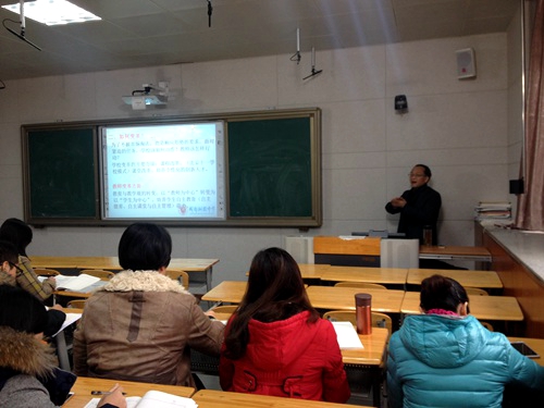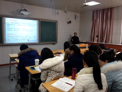 2015年12月29日,外国语校区青年教师研修活动展开了以“课堂变革的思考”为主题的讲座,主讲人为外国语校区朱志刚校长助理,他以“变革”为关键词,以学校和课堂变革实例为载体,向青年教师阐释了勇敢变革的重要性并提出了操作性建议。