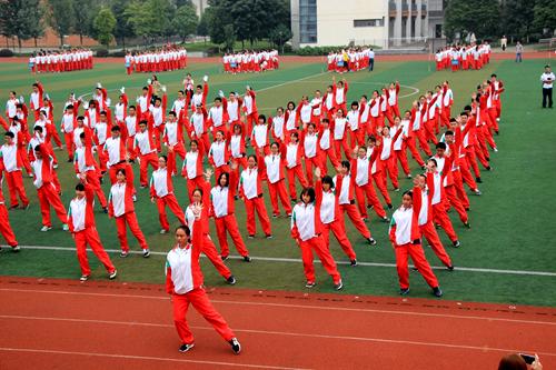 下午三点55分,全校学生迅速整理着装,调整队伍,精神抖擞地快速奔向操场。比赛中,各班级整齐划一的动作,饱满昂扬的精神面貌,充分展现了树德人团结进取、积极向上的品质,赢得了评委们的高度评价。