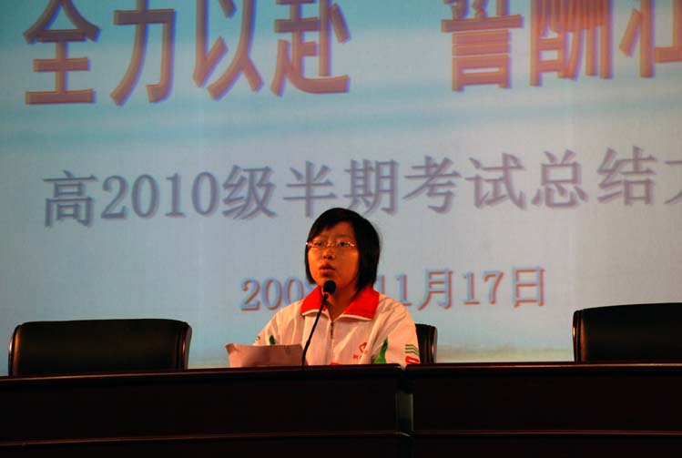 11月17日下午,高2010级期中考试总结会在学校学术交流中心二楼举行,毛道生副校长、刘嘉主任以及2010级所有师生参加了此次总结会。