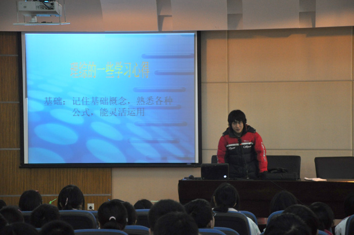 1 月 28 日 中午,部分09届树德学子回到母校在学术演讲厅与学弟学妹们就高中各科的学习进行交流,受到广大同学的热烈欢迎。
