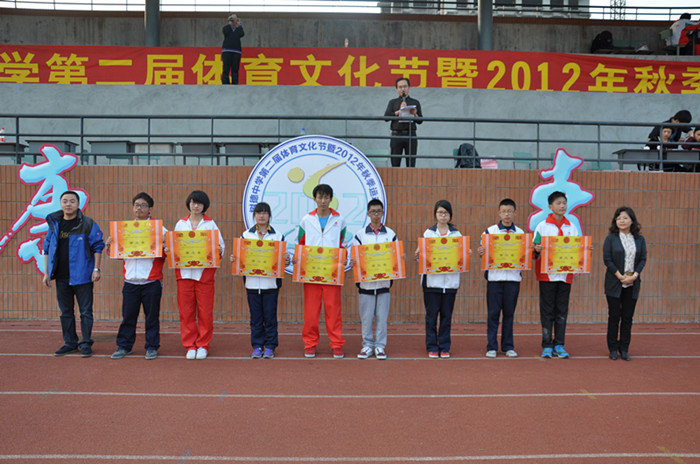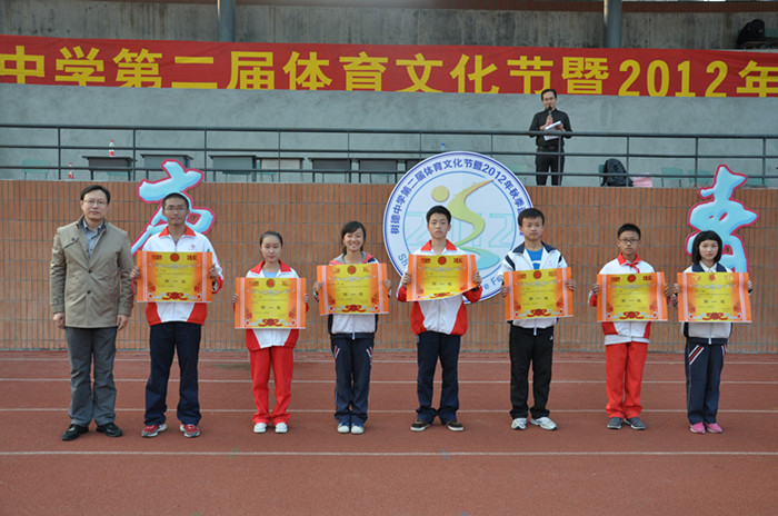 经过两周的筹备和两天激烈紧张的比赛,树德中学第二届体育文化节暨2012年秋季运动会胜利闭幕。本次运动会取得了圆满的成功,也取得了优异的成绩。在闭幕式上,陈铁军主任对本届运动会进行了简短的总结,唐佳庆副校长、林毅副校长、吴波主任、宋德波主任、刘涛主任、李海燕副主任、许国华副主任分别为荣获团体总分、入场式及优秀组织奖的班级颁奖。