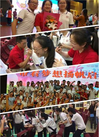 师生、家长代表无不动容,全体学生起立,高声歌唱凝聚三年满满回忆的校歌。毕业典礼结束,师生合影留念,深情拥抱,不忍离别。