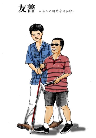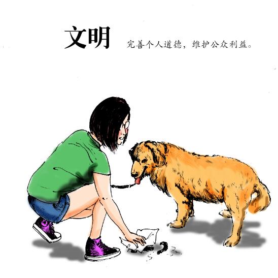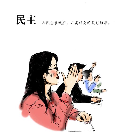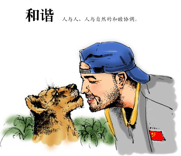 进入高二时,刘予涵又萌发了手绘《社会主义核心价值观》的想法,意在用图片生动形象的展示了社会主义核心价值观的内涵。富强、民主、文明、和谐,是社会主义核心价值体系中的中国特色社会主义的共同理想。倡导自由、平等、公正、法治,这是中国社会海纳百川、兼容并包,创造性转换又为我所用的一种最有利的表现。爱国、敬业、诚信、友善,这一层次主要是个人层面的核心价值观。刘予涵通过手绘的形式很好地阐释了社会主义核心价值观的深层含义,也是我校学生学习践行社会主义核心价值观的直接体现。
