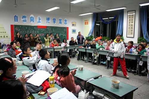 2015年12月30日晚,成都地区雾霾深重寒风凛凛,但外国语校区各班教室里张灯结彩、欢歌笑语、温暖无比,各班级正用热情点燃这个冬夜,庆祝2016年的到来。各班学生邀请老师和家长齐聚一堂,用歌唱、舞蹈、朗诵、小品等多种表演形式庆祝这一辞旧迎新的时刻。这是一个跨越的时刻,更是一个改变的时刻,同学们即将从2015走向2016,也将从今夜迈向一个更新的明天。新的一年即将到来,让我们一起守望新的梦想,迎接2016年的希望!