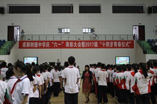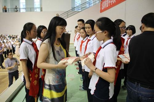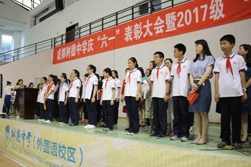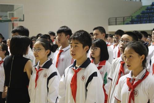 6月1日16:55,外国语校区初一和初二全体师生和部分家长齐聚体育馆,共同庆祝“六·一”。