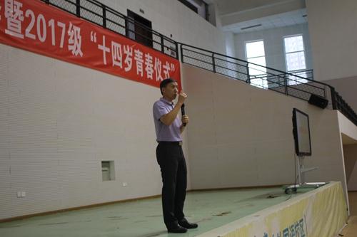 初二6班赵书立的妈妈代表家长发表寄语,希望孩子们可以做身心健康、仁爱感恩的人;在步入青年行列时树立目标,磨砺自己顽强的意志,用踏实的行动坚守自己的目标和梦想;能够与身边的青年建立起美好真诚的友谊,互帮互助,共同体验成长的快乐。