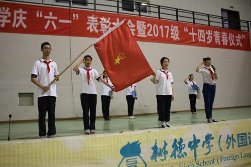在活动正式开始之前,全体同学一起在视频中回顾了自己一学年的学习生活点滴。两个年级的优秀集体和个人获得了隆重的表彰,充分感受了在童年逐梦路上的成就感。唐校长发表讲话,寄予了孩子们祝福。他提出“六一快乐”的内涵是“成长的快乐”,同学们要有丰富的梦想和清晰的思考,去认识自己,追求最好的自己,用“成长”的方式庆祝儿童节;初二同学退出少先队,完成少年使命,即将迈进青年行列,更应该用奋斗的姿态迎接自己的青春时代!