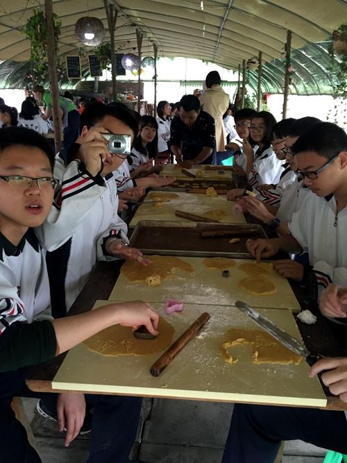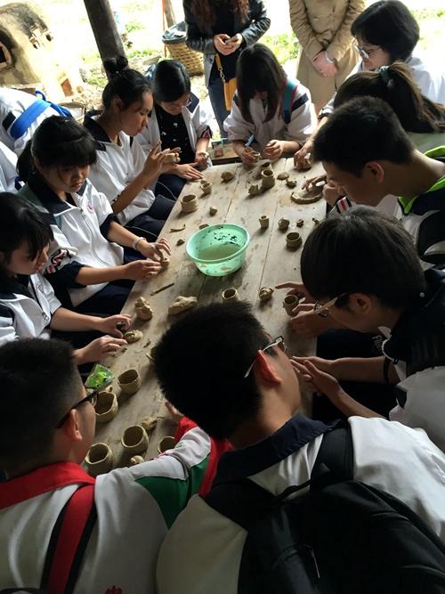 4月8日早晨七点十分,跟随着长长的队伍,同学们井然有序地乘上巴士,一天的活动从此启程! 约莫两小时,抵达凡朴农庄。扎染、组装、烘培、陶艺、喂养、草编共六个大组的同学们依次到达指定地点,开始完成工作人员分配的任务。喂养组通过亲自割马草、准备饲养食材,再到亲自喂养鸭、鹅、牛、羊、马、猪等常见牲畜,体验了农庄生活;扎染、陶艺、烘培、草编组,通过不断的尝试与探索,最终不仅收获了自己的作品,也是学会了一门独特的技能;组装组,将自己所学知识与植物生态水循环设计相结合,组装出一组组既节约能源又有利于植物生长的系统……