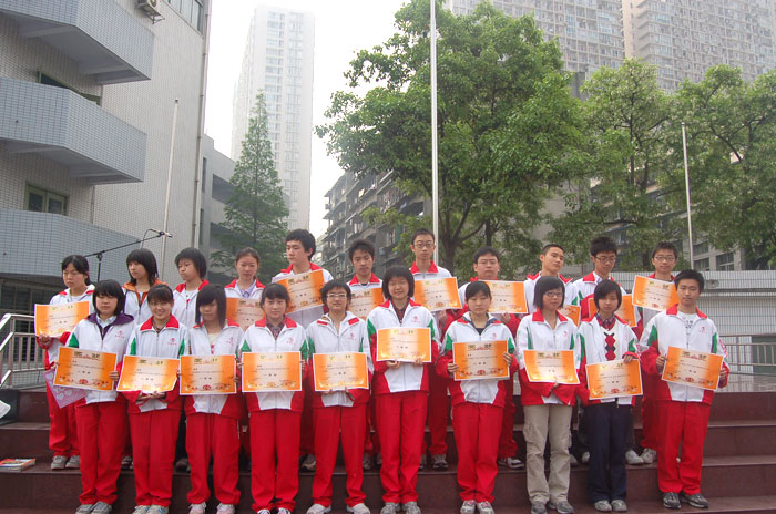 15日上午9时25分,在树德中学宁夏街校区运动场,由高2010级语文组组织开展的硬笔书法大赛颁奖仪式隆重举行!共有康庄、邓潇语、丁君颖、黄曼林等46位同学分别获得特、一、二、三等奖。颁奖仪式由校长助理、德育处主任胡霞老师主持,语文教研组组长邓文光老师、李丹老师担任颁奖嘉宾。