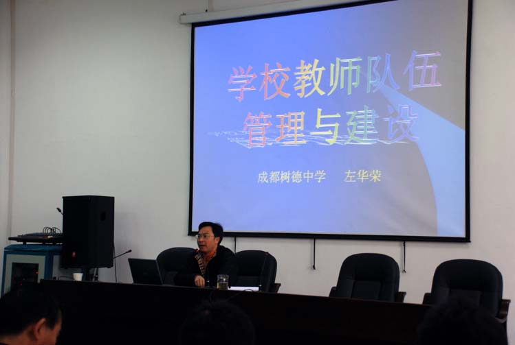 11月17日上午,青海省人事厅教育管理培训班一行到我校交流,我校左华荣校长、毛道生副校长热情接待了来访客人,左校长介绍了我校历史、办学思想、以及我校近几年的辉煌成绩,并应邀介绍了我校的人事管理方面的内容。来宾们仔细听取了左校长的讲解,对树德的人事聘任制度赞不绝口。