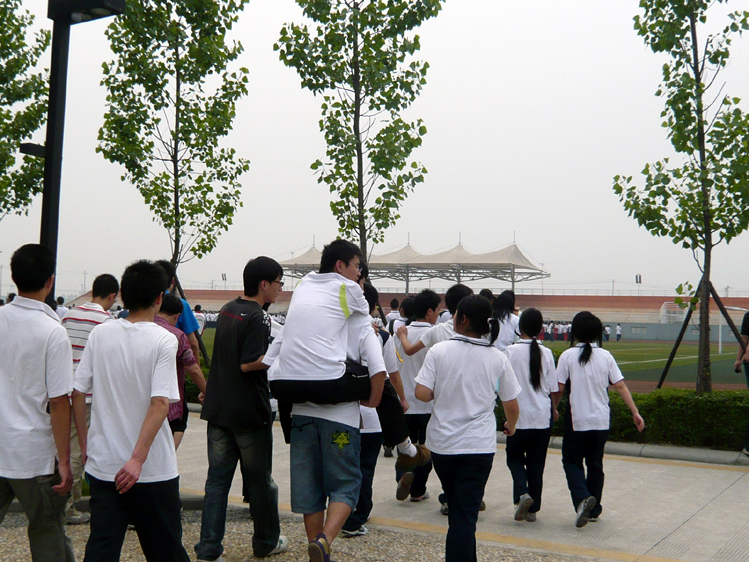 2008年5月12日下午突发强烈地震。在同学们撤离的过程中,同学们互帮互助,出现了一幕幕感人的画面。