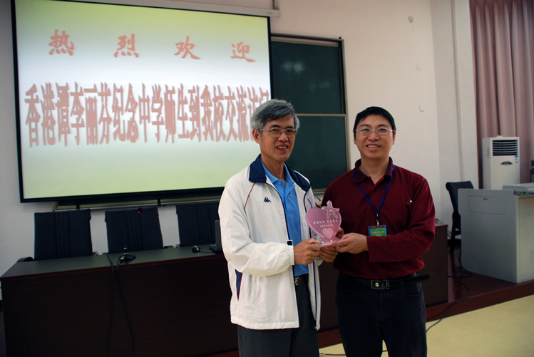 在交流过程中,谭李丽芬纪念中学校长向我校赠送了由同学自己制作的纪念品。