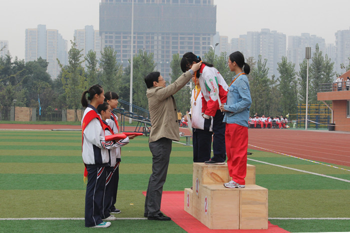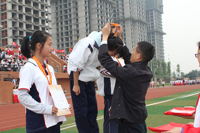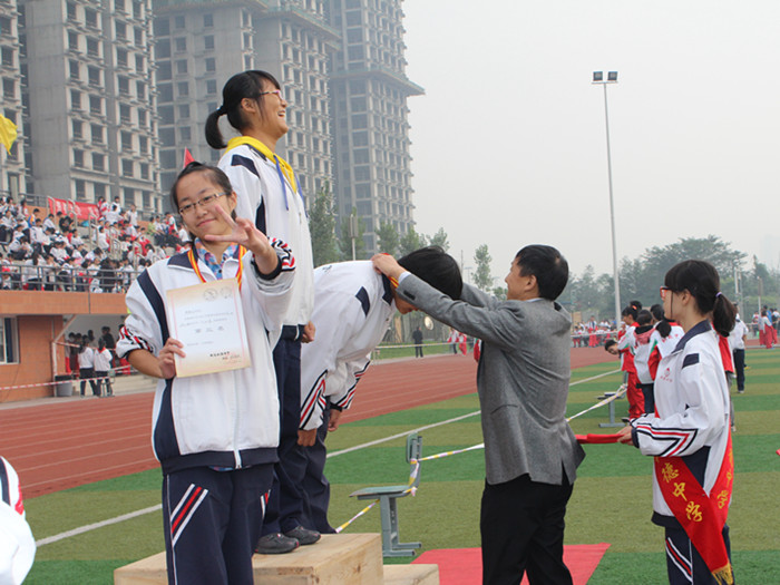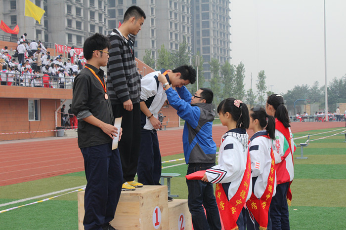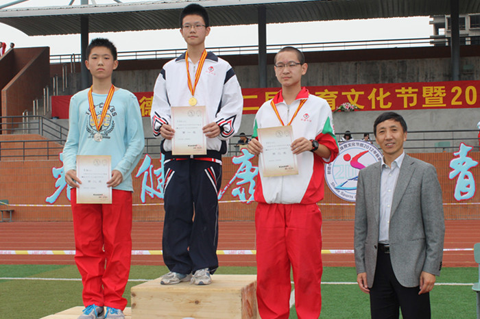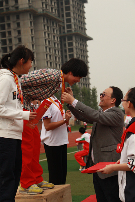陈东永校长来到了我们运动会现场对同学们进行鼓励,并为获奖者颁奖