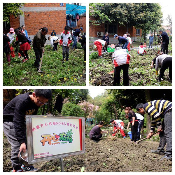 2016年3月27日下午,初2015级每个班选拔了两组爱心家庭,在年级组、园艺疗法课题组指导教师的带领下前往中国成都SOS儿童村。可爱的树德学子同爸爸妈妈还有儿童村的妈妈孩子们一起为村里的1号家庭、12号家庭开垦了两块“开心农场”,用真情种花、种菜、种春风,让满满地爱与希望在开心农场里生长。