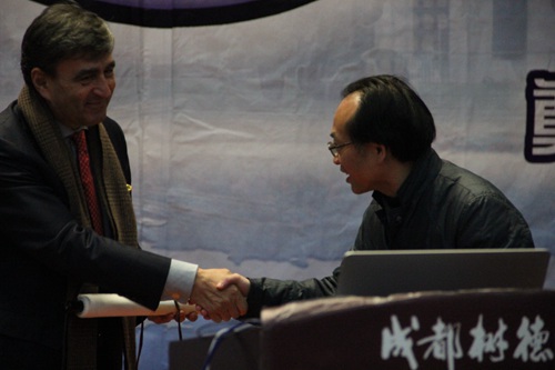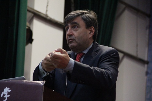 Eric Mazur教授的讲座包括三个方面:波导、纳米线制造、纳米级的光学性质。Eric Mazur教授用通俗易懂的语言,结合实验图片、实验示意,偶尔采用打比方的方法,将深奥的科学知识化为一个个生动的生活场景,为与会老师和同学们诠释了他所从事的 “微纳光纤”研究。