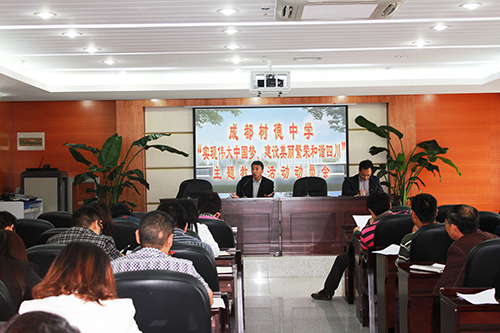 5 月 16 日 下午,树德中学(外国语校区)召开了“实现伟大中国梦、建设美丽繁荣和谐四川”主题教育活动动员会。在动员会上,唐校长结合我校实际,就本次主题教育活动的开展进行了部署,并对高一、高二年级已经开展的“我的梦·中国梦”主题团日活动给予了充分肯定。